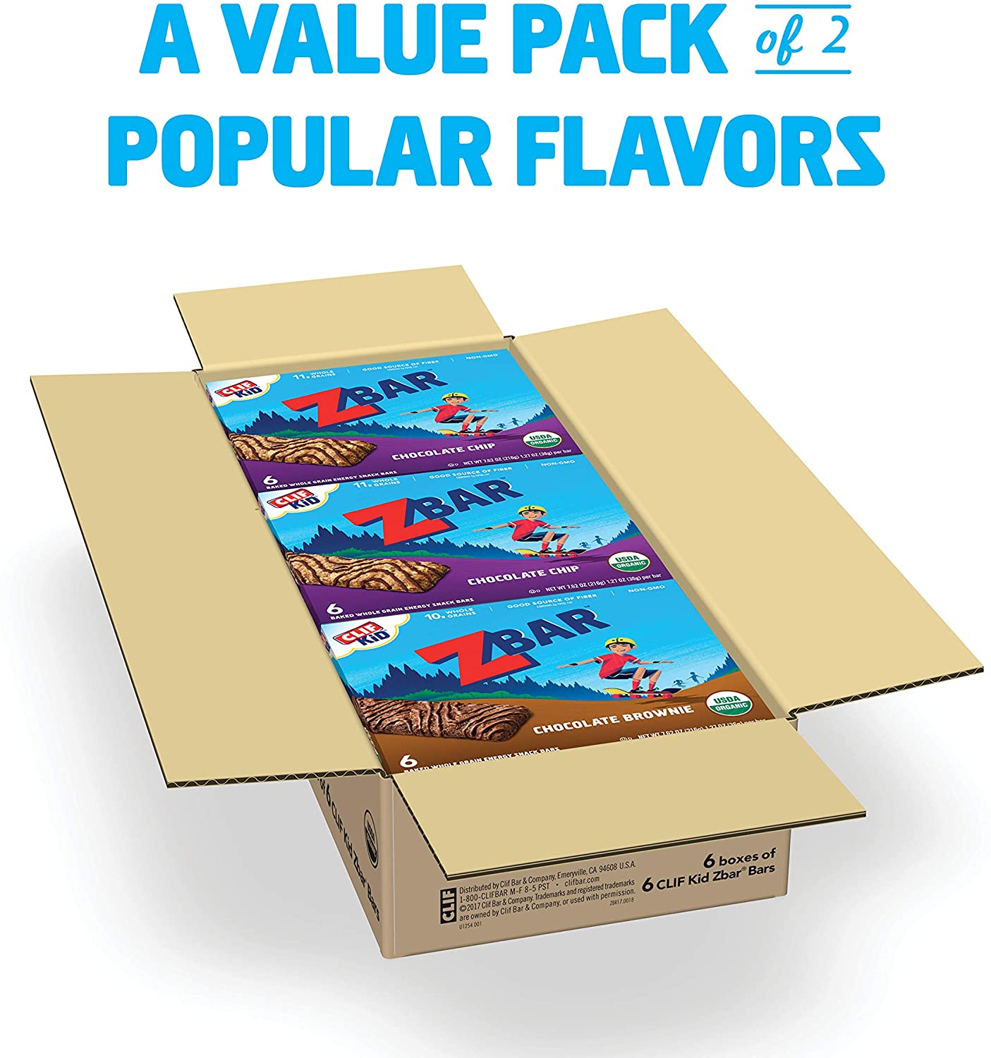 - Case includes 36 Zbars total, 18 bars of each flavor: Chocolate Chip and Chocolate Brownie