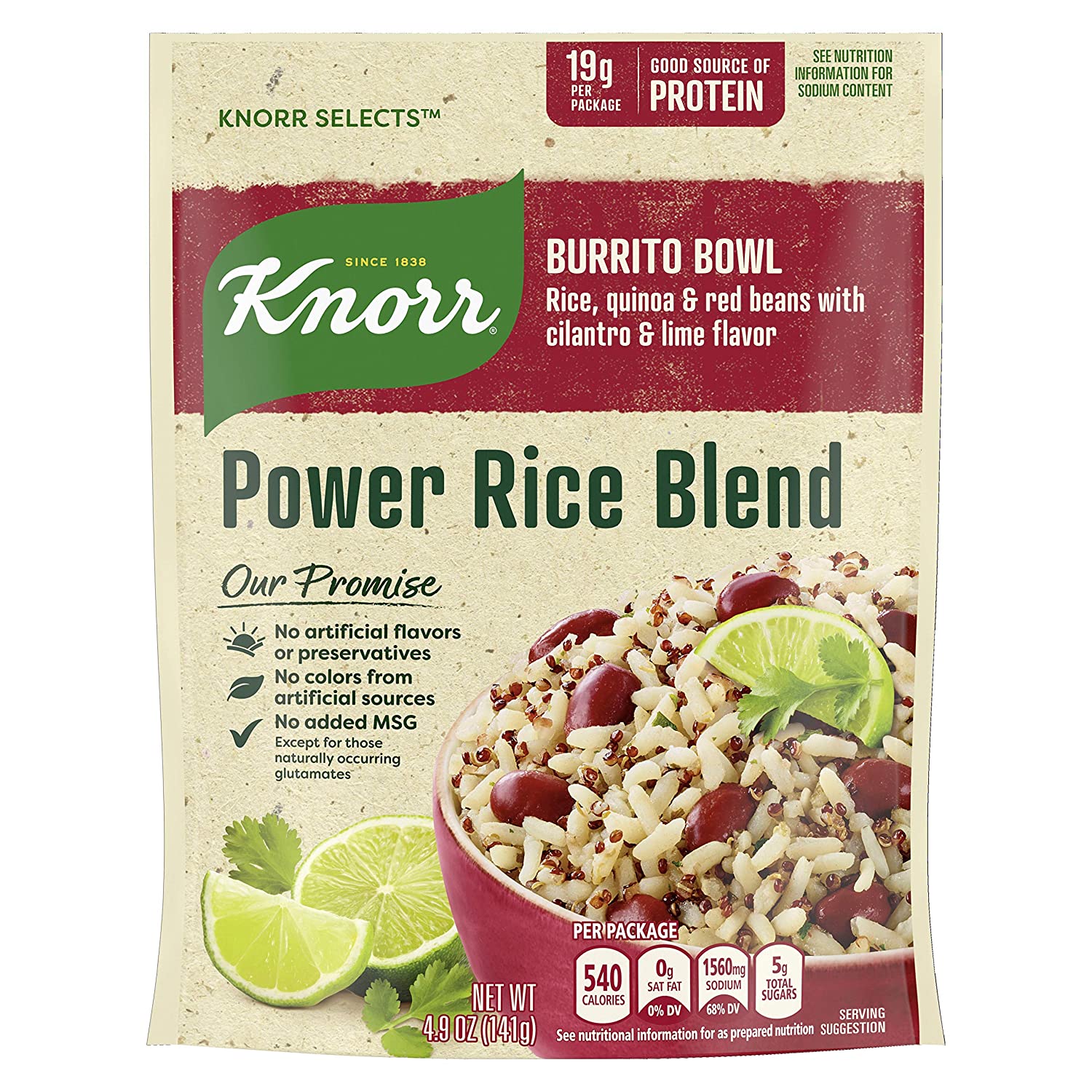 - Knorr Selects Burrito Bowl Power Rice Blend is made with rice, quinoa grains, and red beans with cilantro and lime flavor