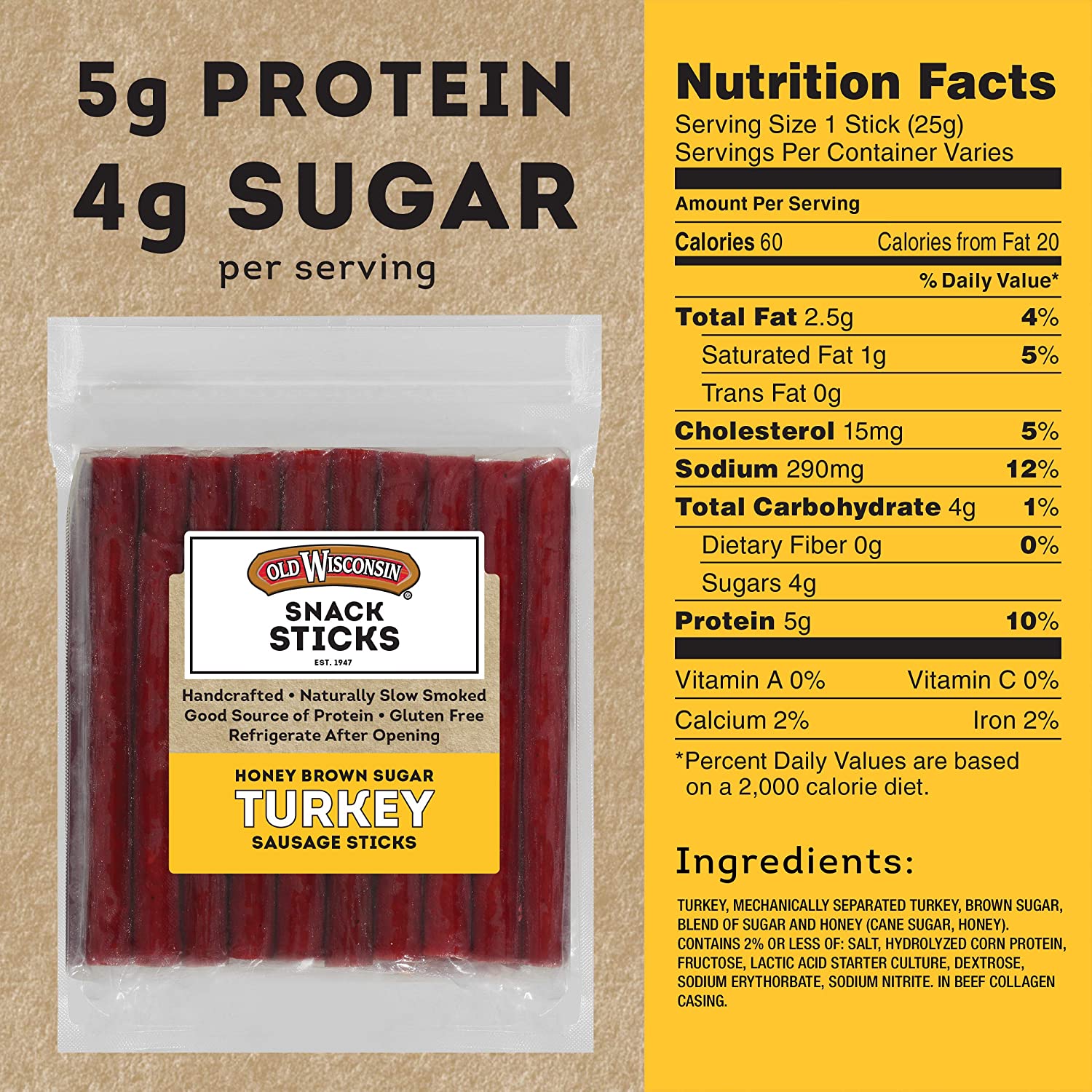 - Contains one (1) 28 oz. resealable package of honey brown sugar turkey sausage snack sticks