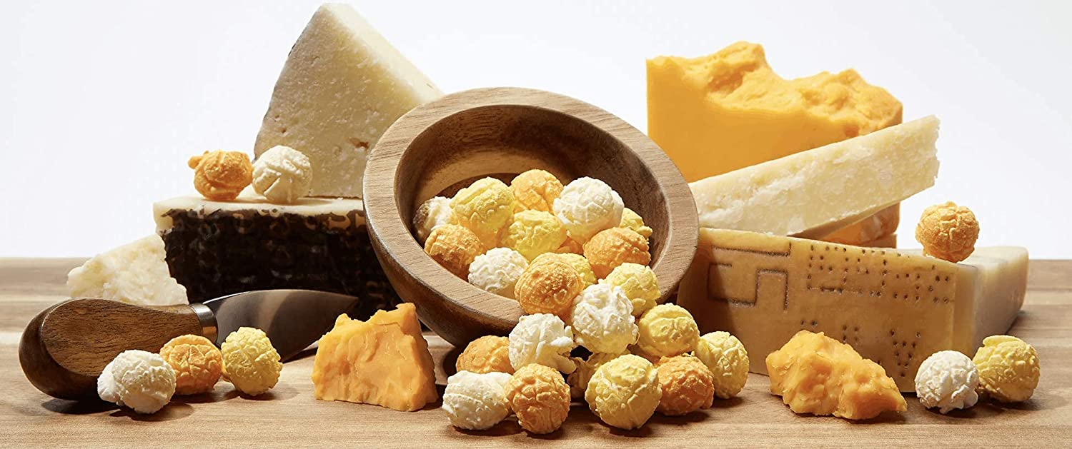- The Ultimate Gourmet Popcorn Cheese Experience. Our combination of three cheeses - Cheddar, Parmesan, and Romano - is pure popcorn wizardry that will satisfy even the most discerning of cheese lovers. This bag of Triple Cheese is made from real cheeses and bursting with creamy, cheesy greatness in every mouthwatering bite. Forget your usual cheese popcorn, this is next level, triple cheesiness.