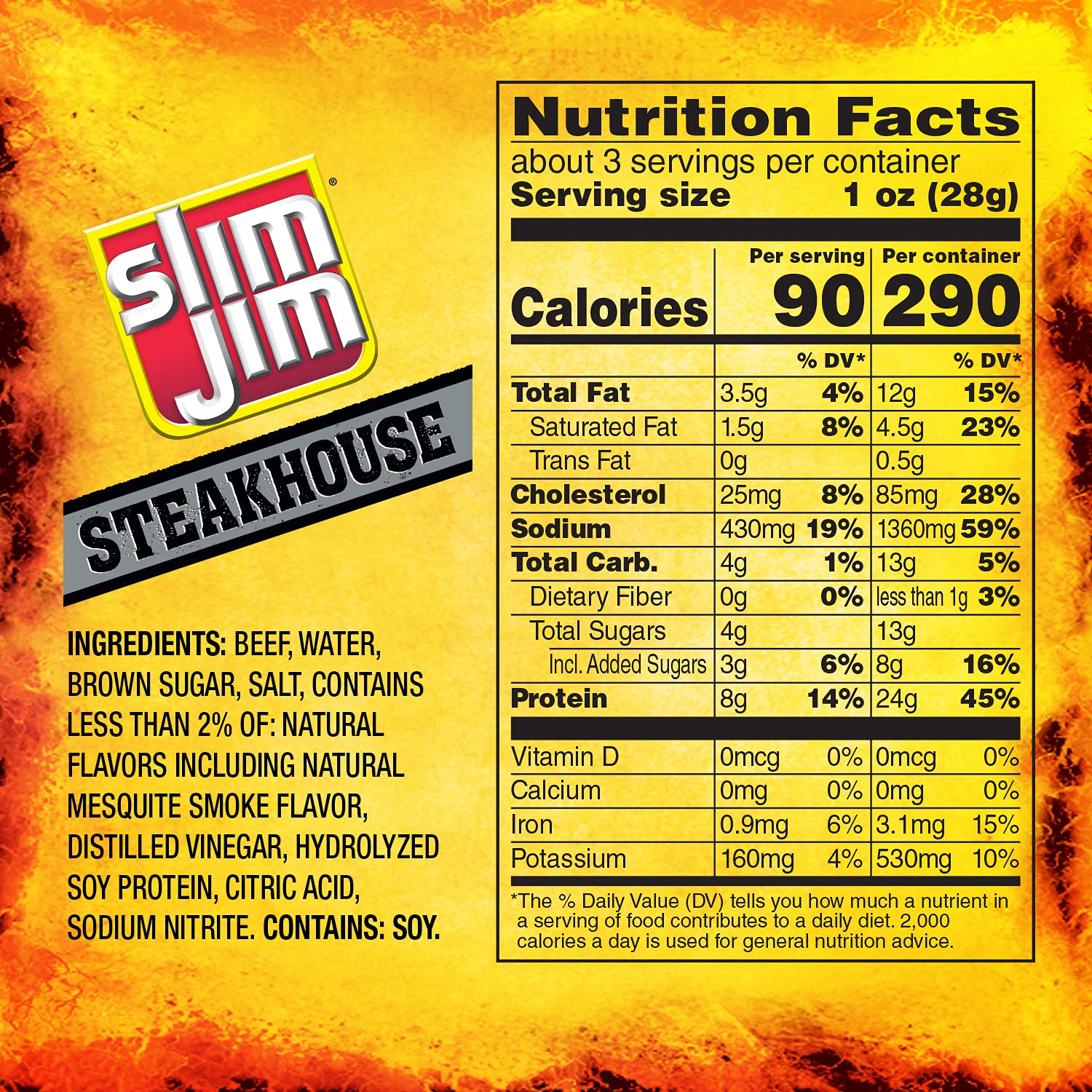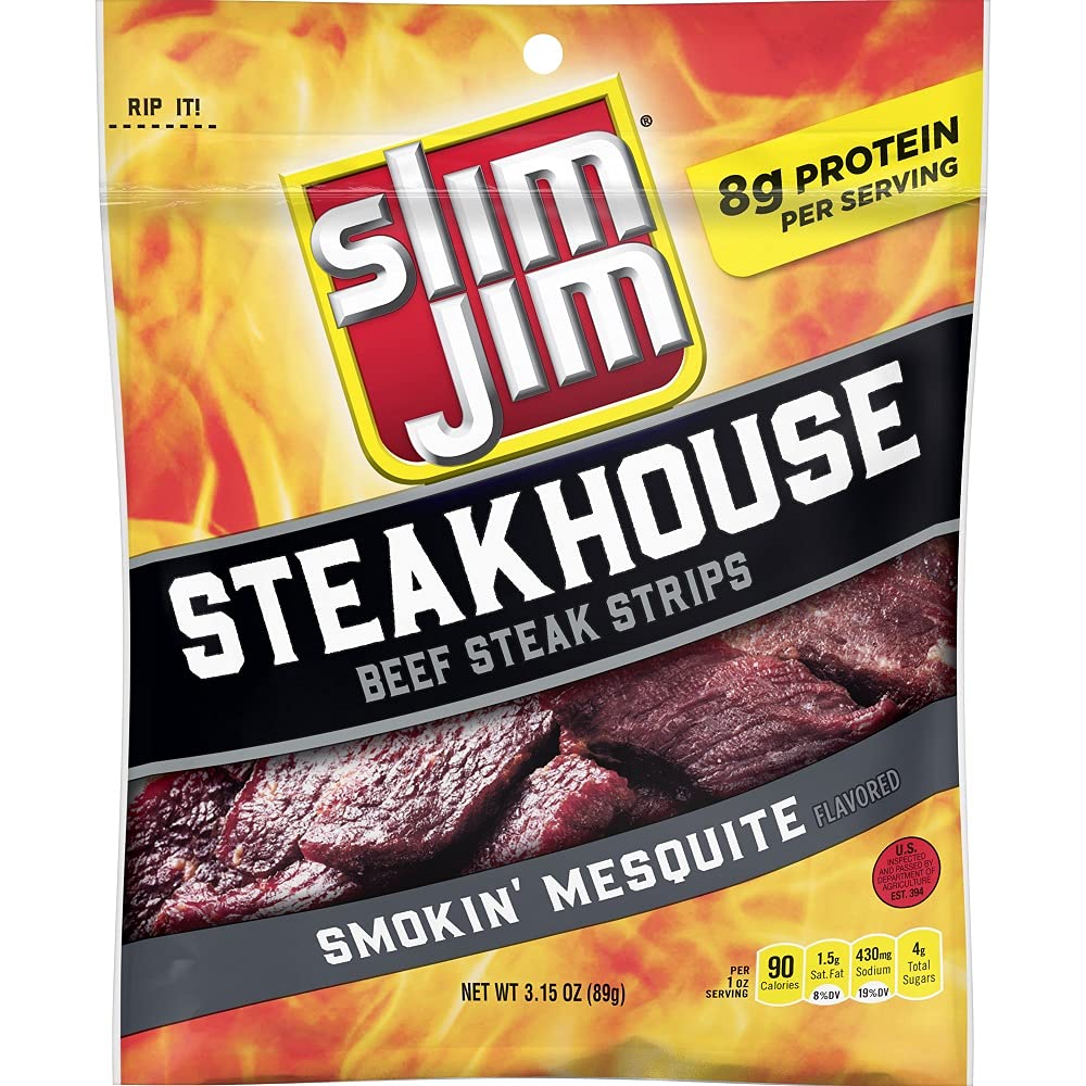 - snack bags of Slim Jim Smokin’ Mesquite Flavored Steakhouse Strips