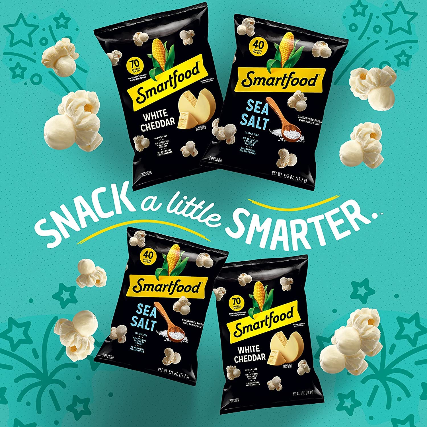- Includes 40 individually wrapped snacks: (20) bags each of 0.5 oz Smartfood Popcorn Flamin' Hot and 0.5 oz Smartfood White Cheddar Popcorn