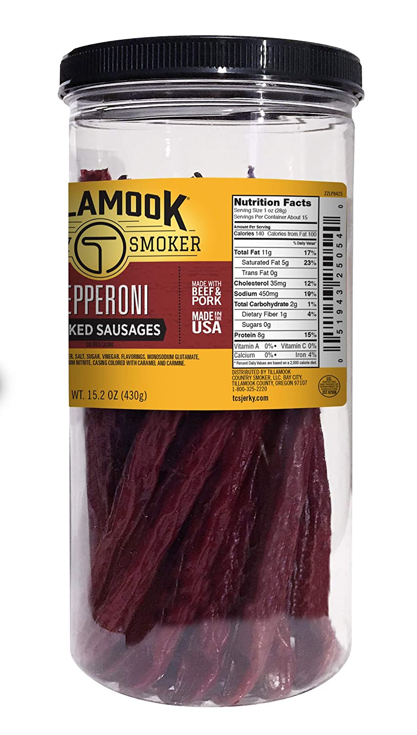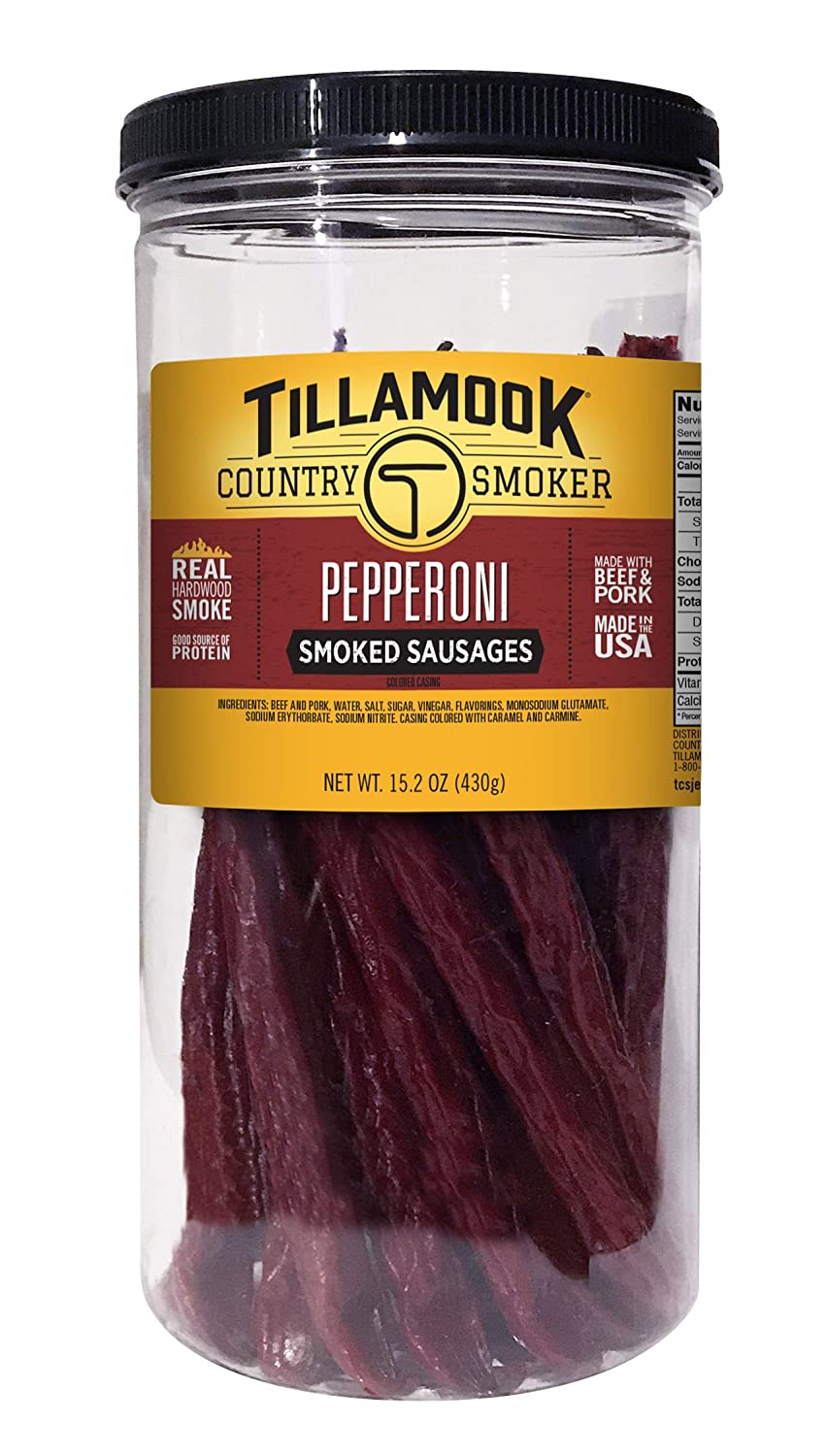 Tillamook Country Smoker Real Hardwood Smoked Sausages, Pepperoni, 15.2 Ounce Tall Jar, 20 Count